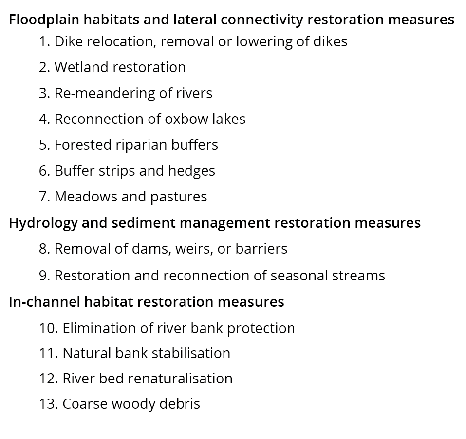 Examples of hydromorphological restoration measures on rivers and their floodplains