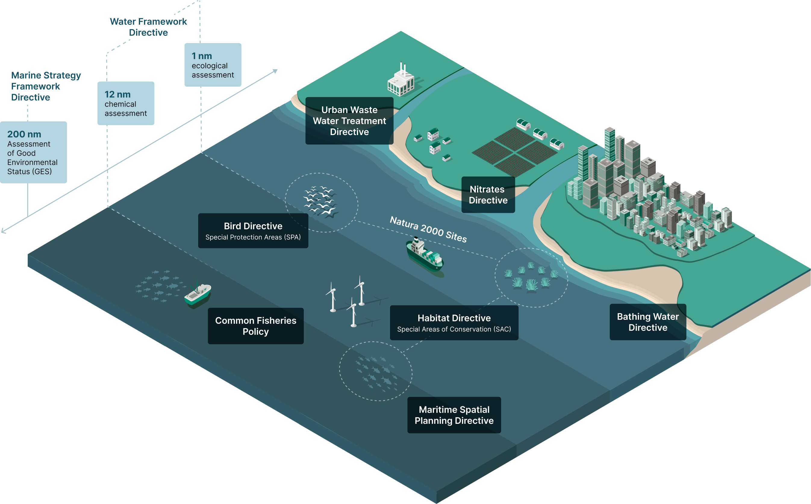 The Marine Strategy Framework Directive (MSFD) builds on all the existing legal instruments for the protection of the marine environment and the sustainable development of maritime sectors, integrating their objectives into a coherent framework that contributes the achievement of the objectives of wider EU policies for environmental protection and sustainability, such as the EU Green Deal and the Biodiversity Strategy 2030.